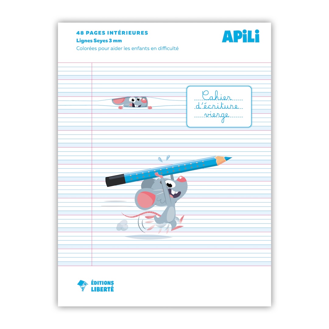 Cahier vierge de 48 pages, épaisseur 90 gr/m2, lignes Seyes 3 mm munies de couleurs pour aider les enfants en difficulté. L’espace de 3 mm entre les lignes est idéal pour les enfants qui apprennent à écrire. Les lignes Seyes classiques ont un espace de 2 mm, trop réduit pour les enfants qui apprennent à écrire.