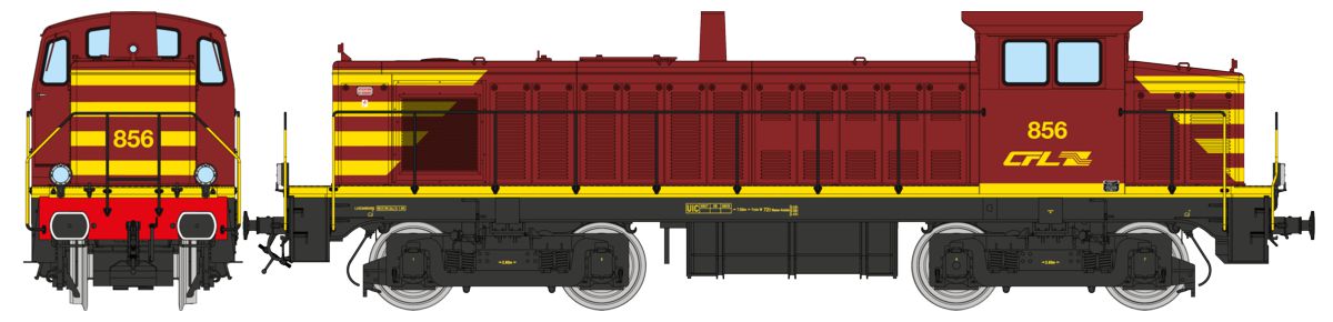 Locomotive diesel CFL 858, livrée époque V, soute à carburants 5000L