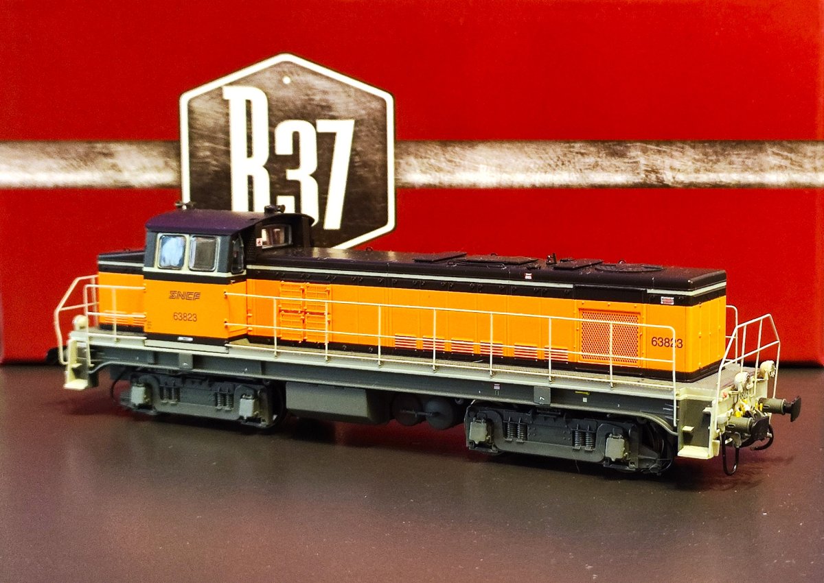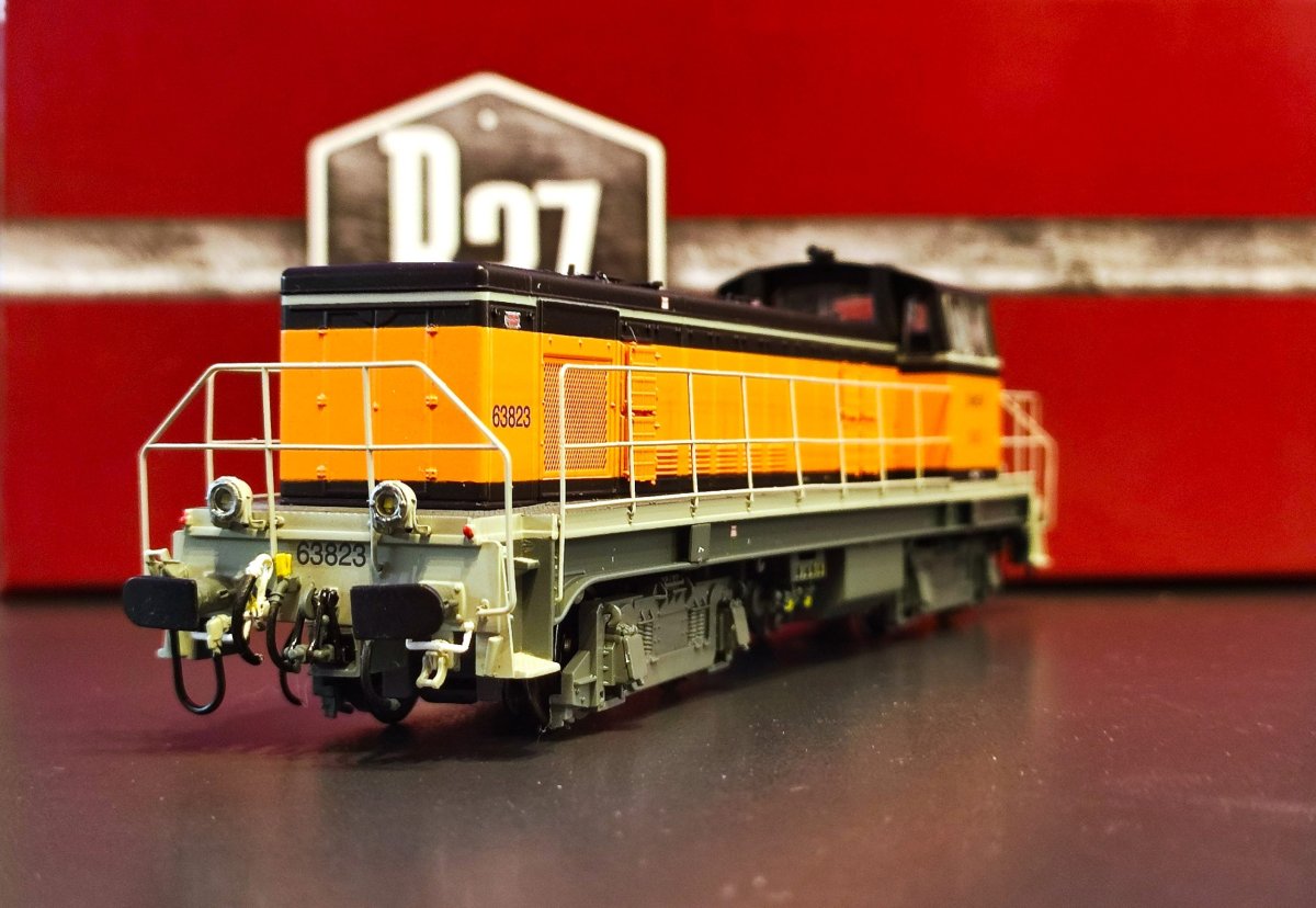 Locomotive diesel SNCF BB 63823, livrée Arzens, logo nouille, dépôt de Toulouse